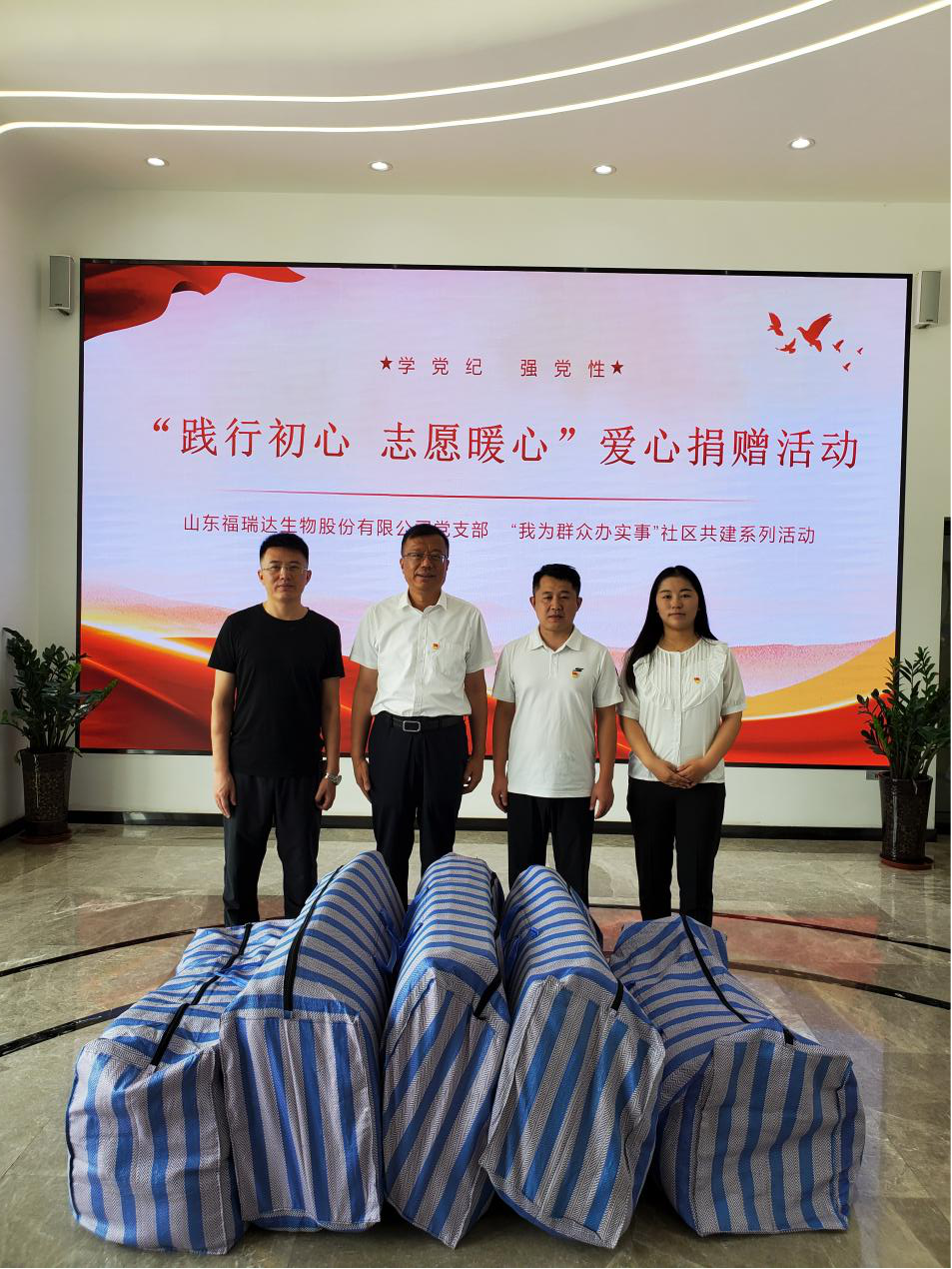 福瑞達(dá)生物黨支部開展“踐行初心 志愿暖心”愛心捐贈(zèng)活動(dòng),為社區(qū)困難群眾捐贈(zèng)了百余套床單被褥等生活物品,幫助困難群眾改善生活條件、送上一份關(guān)懷,以高質(zhì)量發(fā)展成果回饋社會大眾。