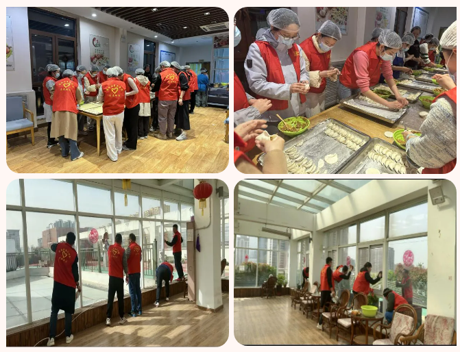 活動中,福瑞達志愿者攜慰問物資向老人送上了慰問及祝福,經過魯商福瑞達護理院工作人員的講解,大家根據安排分組開啟了活動。清潔組的志愿者紛紛拿起勞動用具,前往六樓陽光房為老人清潔玻璃,手工組則來到護理院膳食中心,與院內工作人員一起為老人包制手工水餃。活動現場,志愿者身穿紅色志愿服務馬甲,大家分工合作,個個動作嫻熟,現場笑聲不斷,用實際行動踐行志愿服務、傳承雷鋒精神、弘揚時代新風。
