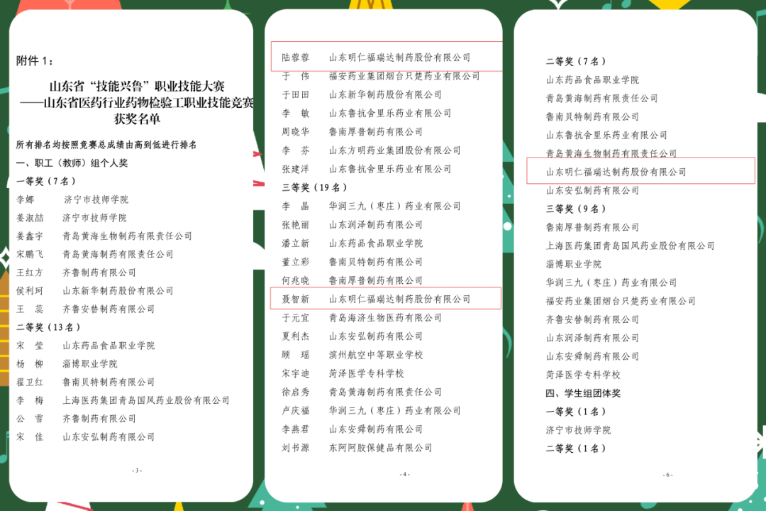 近日,山東省醫(yī)藥行業(yè)藥物檢驗(yàn)工職業(yè)技能競(jìng)賽組委會(huì)公布了山東省“技能興魯”職業(yè)技能大賽——山東省醫(yī)藥行業(yè)藥物檢驗(yàn)工職業(yè)技能競(jìng)賽結(jié)果,明仁福瑞達(dá)榮獲團(tuán)體二等獎(jiǎng),陸蓉蓉、聶智新分別榮獲個(gè)人二等獎(jiǎng)、三等獎(jiǎng)。
