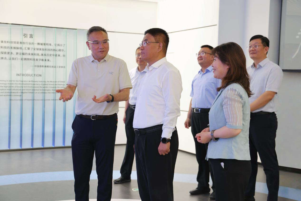 調研期間,孫海生一行首先來到世界美妝科技館。該館以豐富多元的展品陣列結合多媒體互動展示,生動呈現美妝行業從傳統工藝向現代科技融合的迭代歷程。調研組饒有興致地觀摩了珍貴美妝文物與尖端科技產品,對福瑞達在美妝科技文化傳播領域的創新實踐給予充分肯定。
